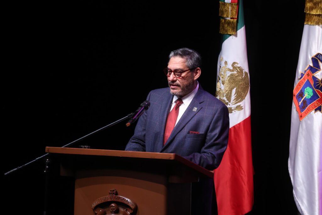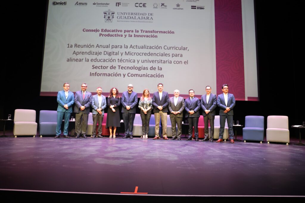 En el Conjunto de Artes Escénicas de la Universidad de Guadalajara, en el marco del Consejo Educativo para la Transformación Productiva y la Innovación, el Dr. González Placencia señaló que debemos no solo repensar nuestros planes de estudio sino las estrategias y acciones que nos permitan incorporar conocimientos emergentes para fortalecer a los egresados de forma integral, con la finalidad de que den respuesta tanto al contexto digital como a las necesidades de talento que requiere el mercado laboral.