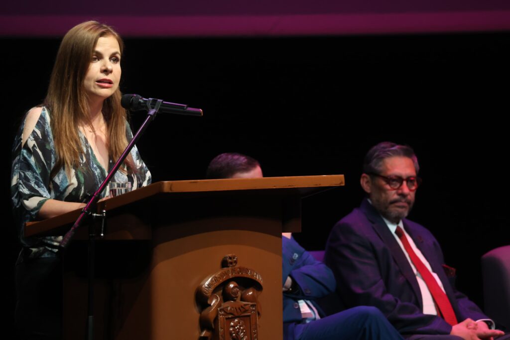 En su mensaje de bienvenida, la Mtra. Karla Planter Pérez, Rectora de la Universidad de Guadalajara, señaló que este es un ejercicio de diálogo y cooperación para coordinar la educación con los objetivos que tenemos como país.