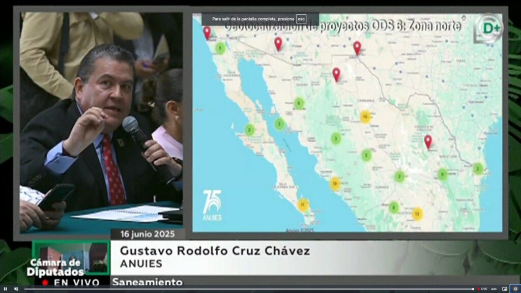 En reunión de trabajo convocada por la Comisión de Recursos Hidráulicos, Agua Potable y Saneamiento de la Cámara de Diputados, el Dr. Gustavo Cruz Chávez, Coordinador General de Vinculación Estratégica de la Asociación Nacional de Universidades e Instituciones de Educación Superior de la República Mexicana (ANUIES), presentó el estado actual y retos que enfrenta nuestro país en materia de agua.
