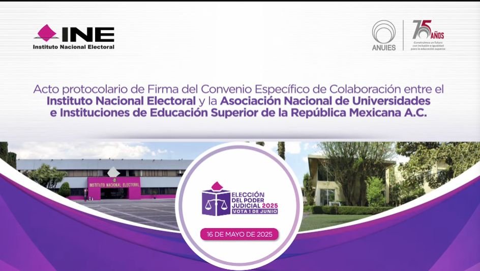 Con el objetivo de promover y difundir programas y actividades que contribuyan al fortalecimiento de la democracia, la difusión de los derechos político-electorales y la promoción entre las instituciones de educación superior asociadas, la Asociación Nacional de Universidades e Instituciones de Educación Superior de la República Mexicana (ANUIES) y el Instituto Nacional Electoral (INE), firmaron un Convenio Específico de Colaboración.