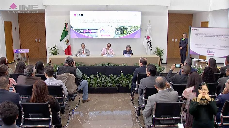 Agregó que las instituciones son y han sido siempre espacios de reflexión y generación de propuestas, que han impulsado tanto a las comunidades universitarias como a las de sus entornos en procesos democráticos en el pasado. Y, “como siempre, nuestra Asociación Nacional de Universidades está al servicio de las grandes causas que tiene nuestra nación. Estamos en la mejor disposición, por ello, para colaborar con el Instituto Nacional Electoral en esta empresa que tenemos enfrente”.